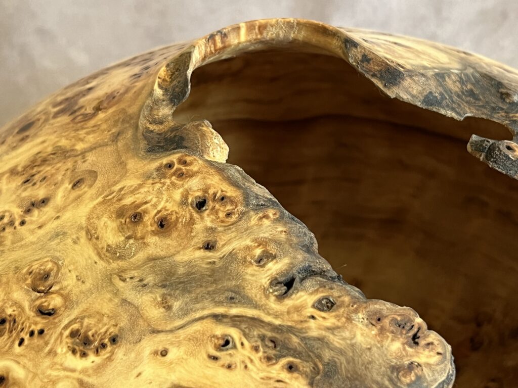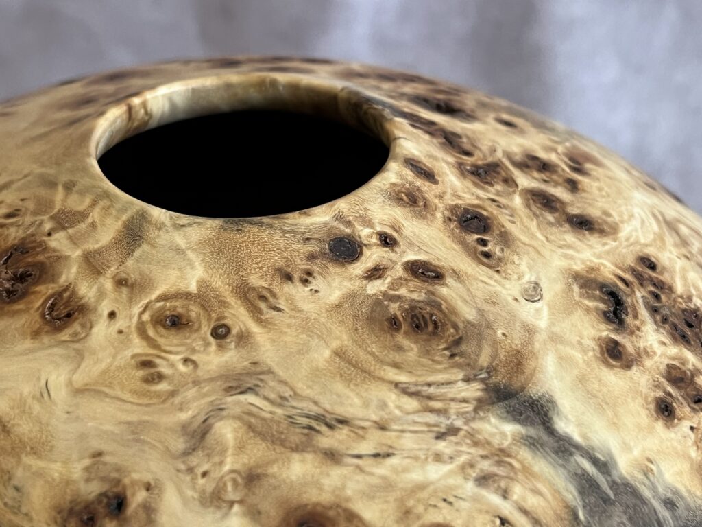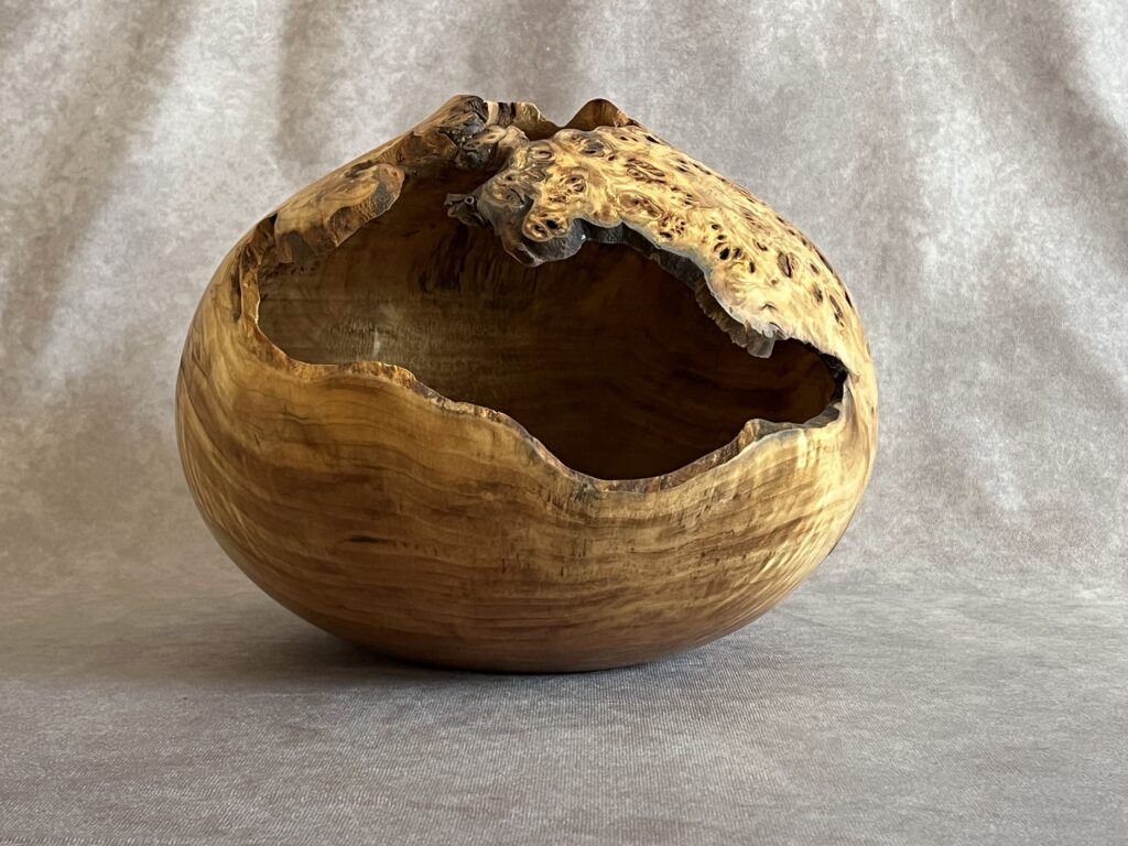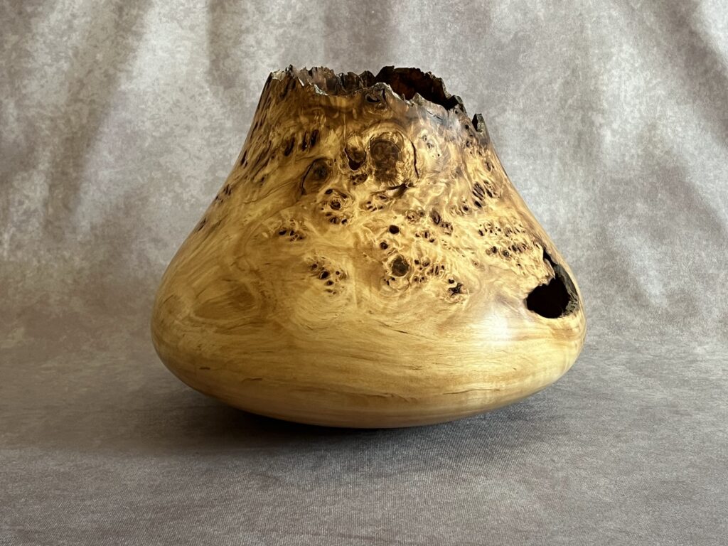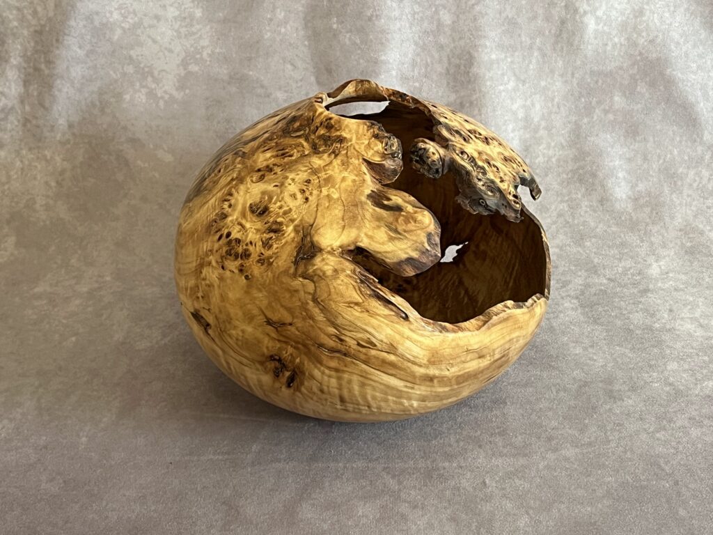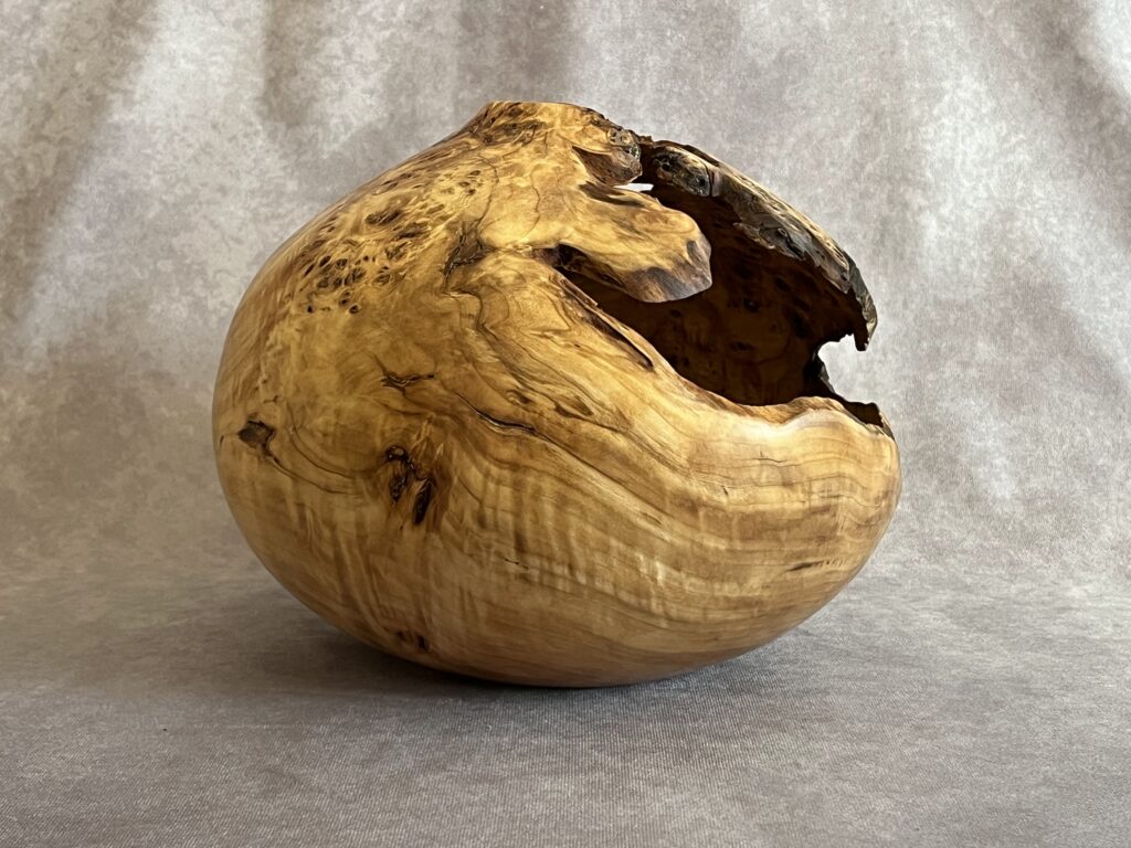 Hollow forms are bowl or vases with a tight opening. They present a great surface to show the wood’s natural beauty but are more difficult to create as the hollowing is done through a relatively small hole.