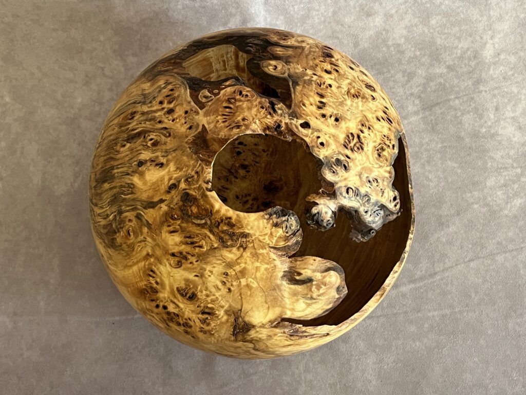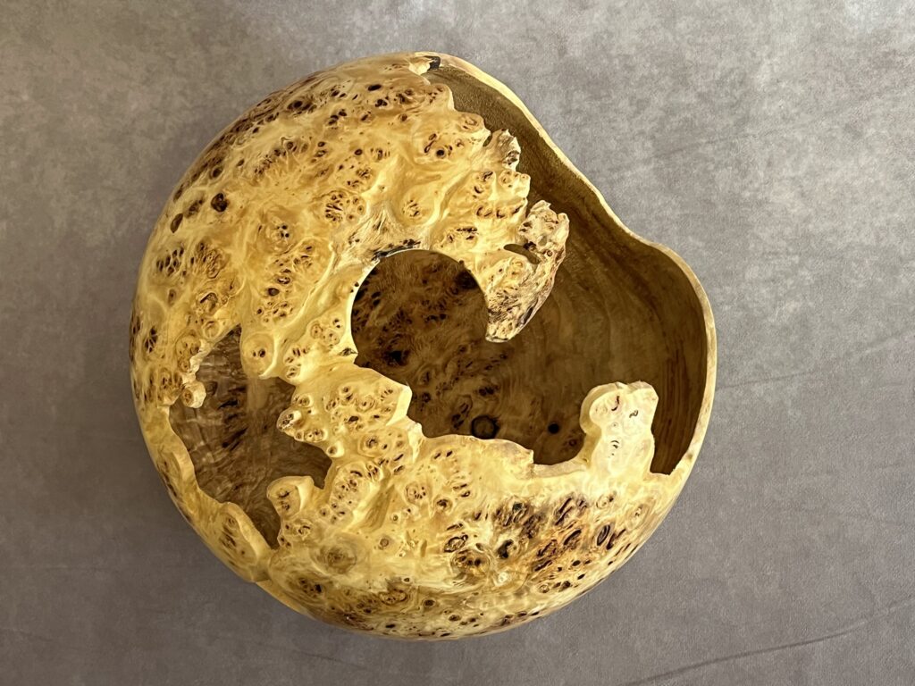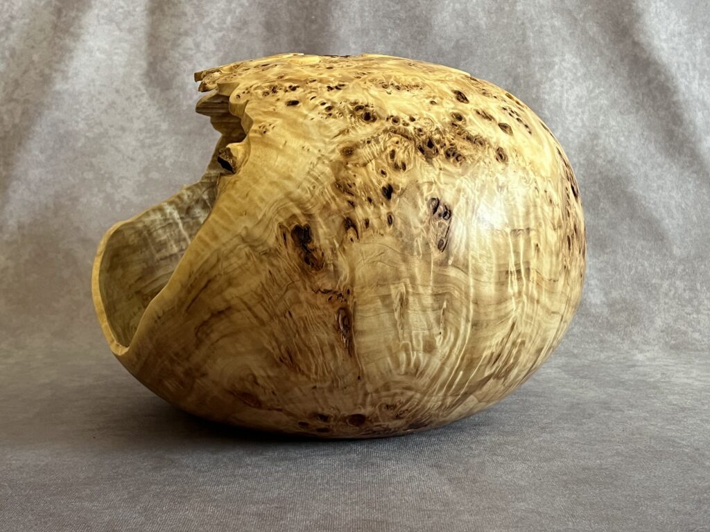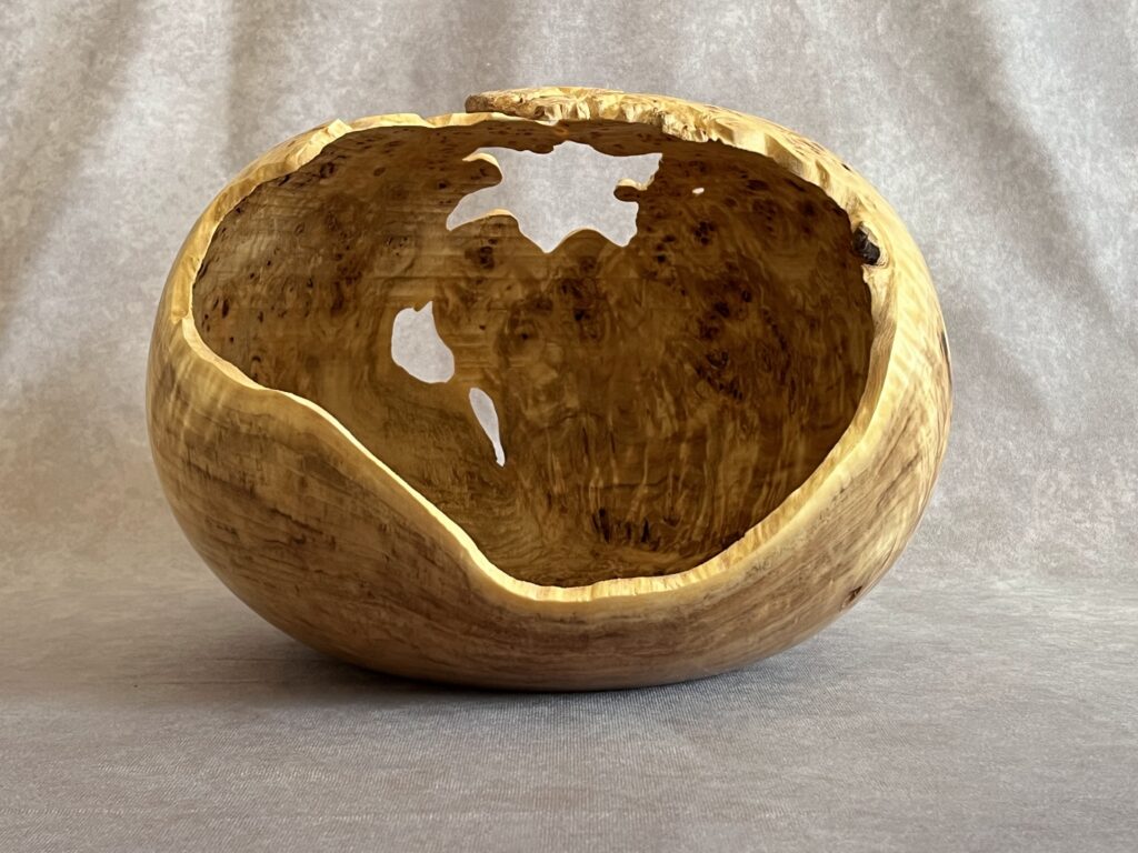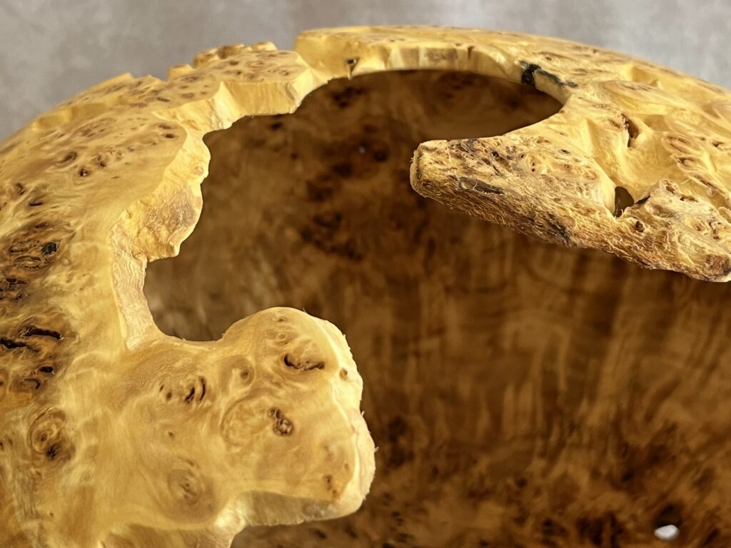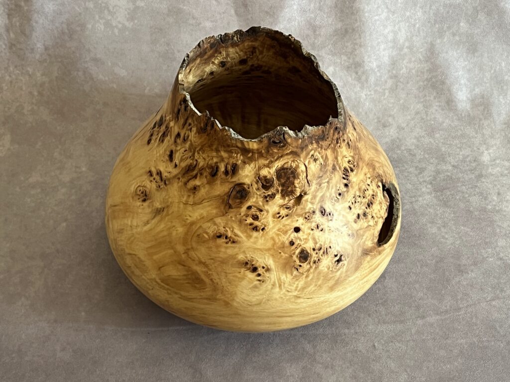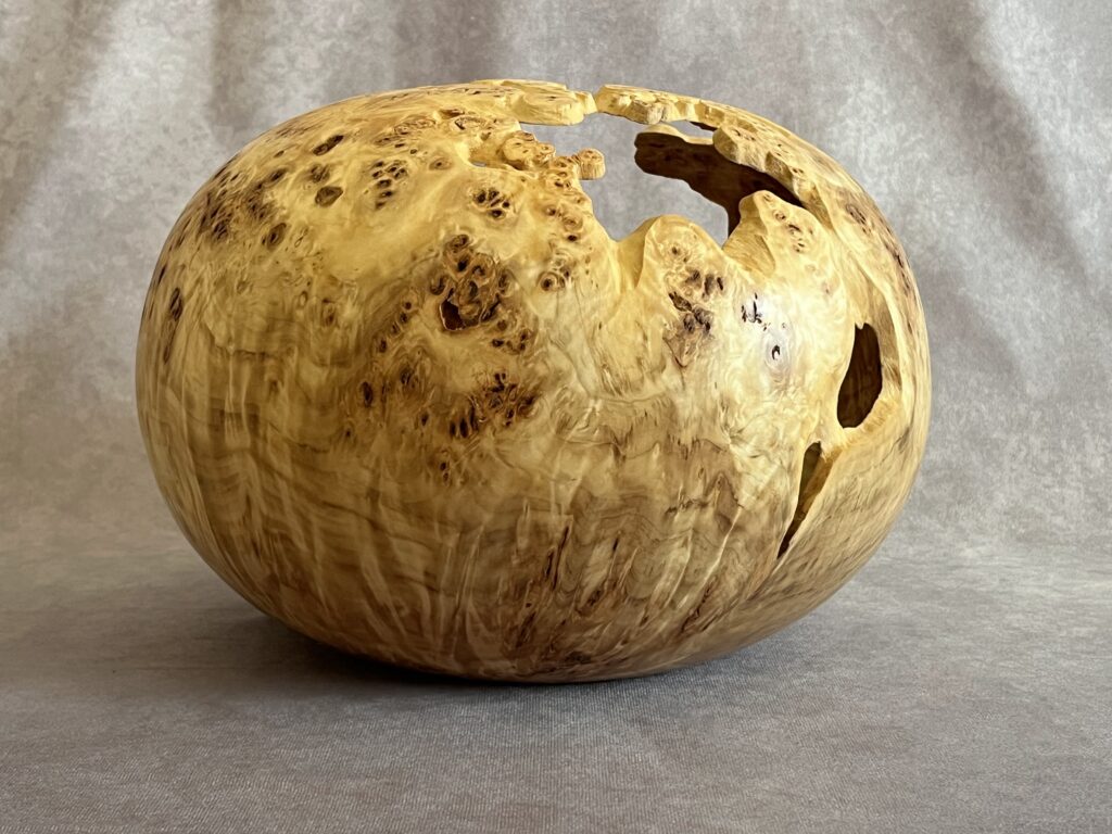 Hollow forms are bowl or vases with a tight opening. They present a great surface to show the wood’s natural beauty but are more difficult to create as the hollowing is done through a relatively small hole.