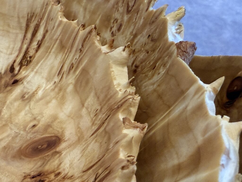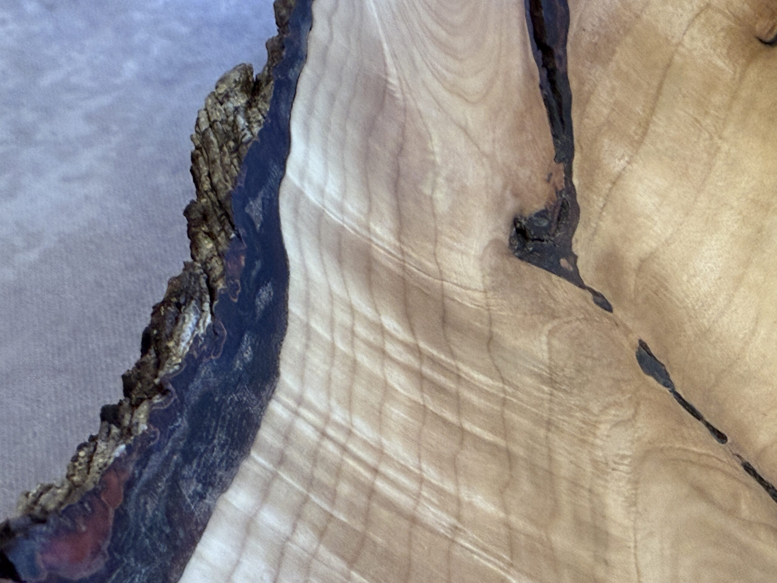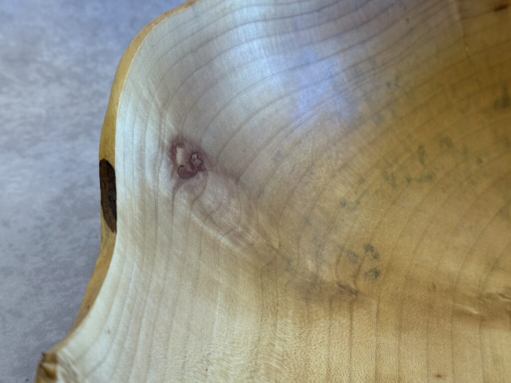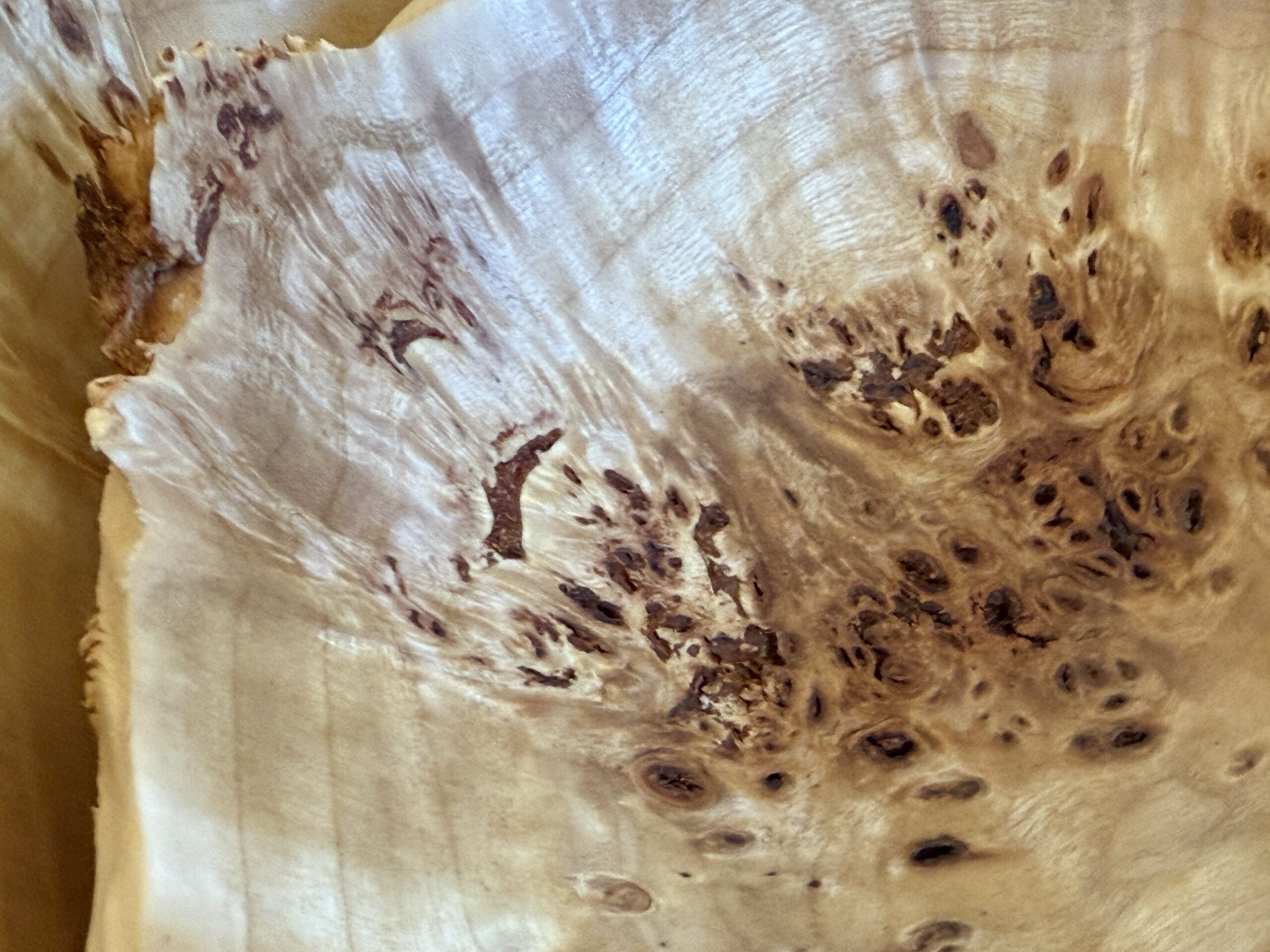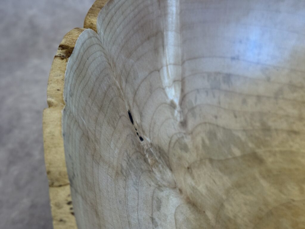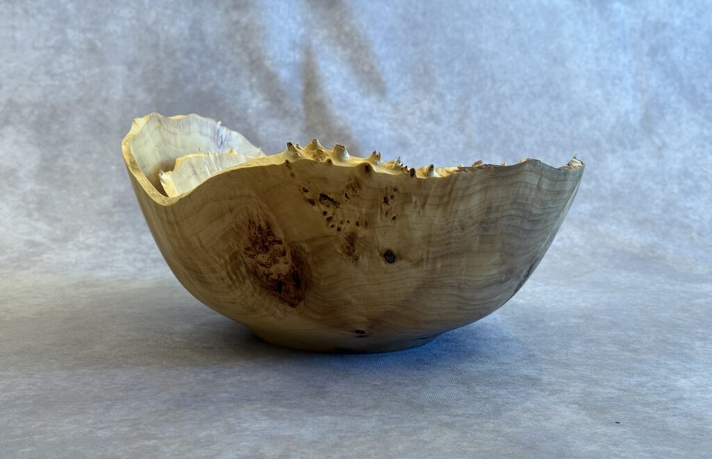 “Natural-edge” bowls are turned so that the rims are the outer face of the tree, many times including the bark. These forms are much more organic and most of the time, they are turned to their final thickness while green. This allows for the wood to warp while it dries, further imparting a more natural shape.