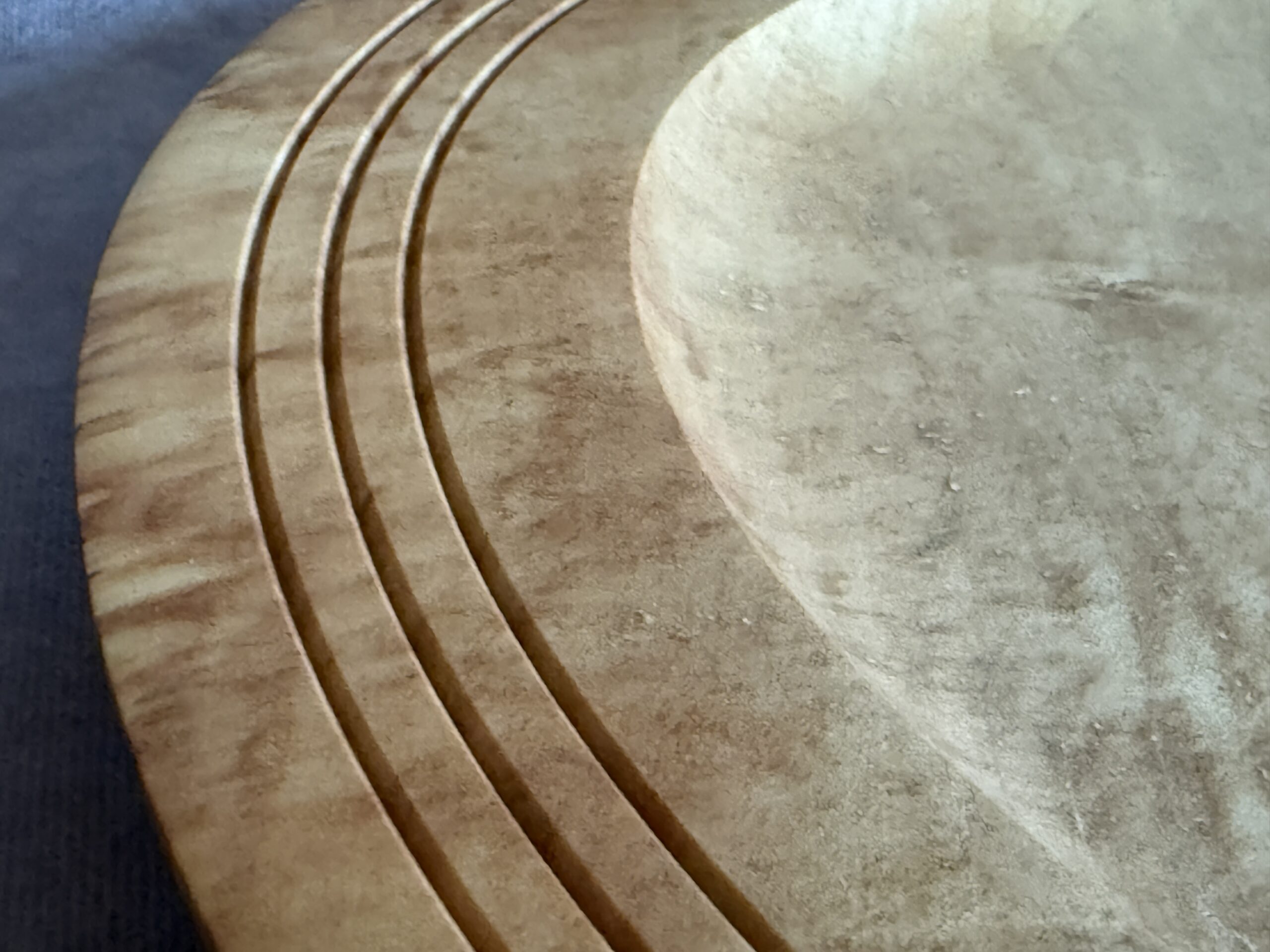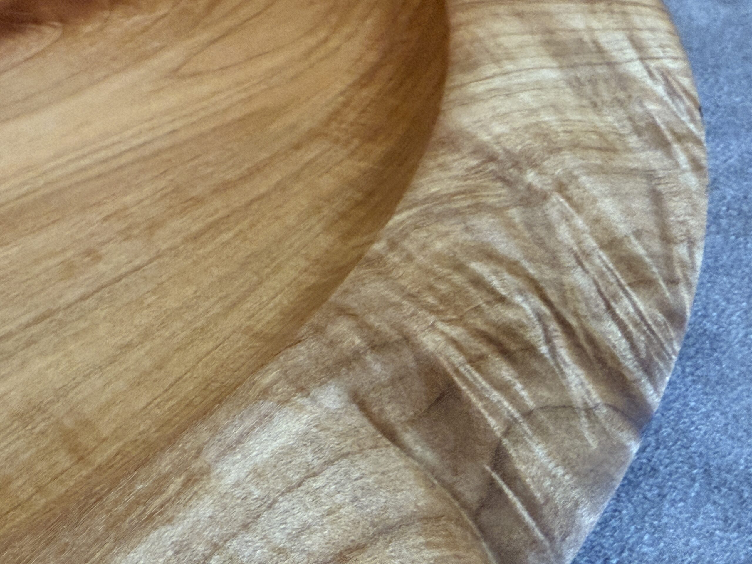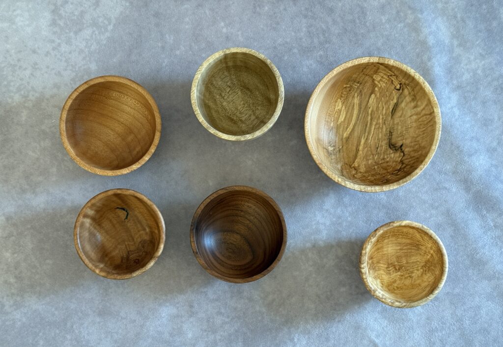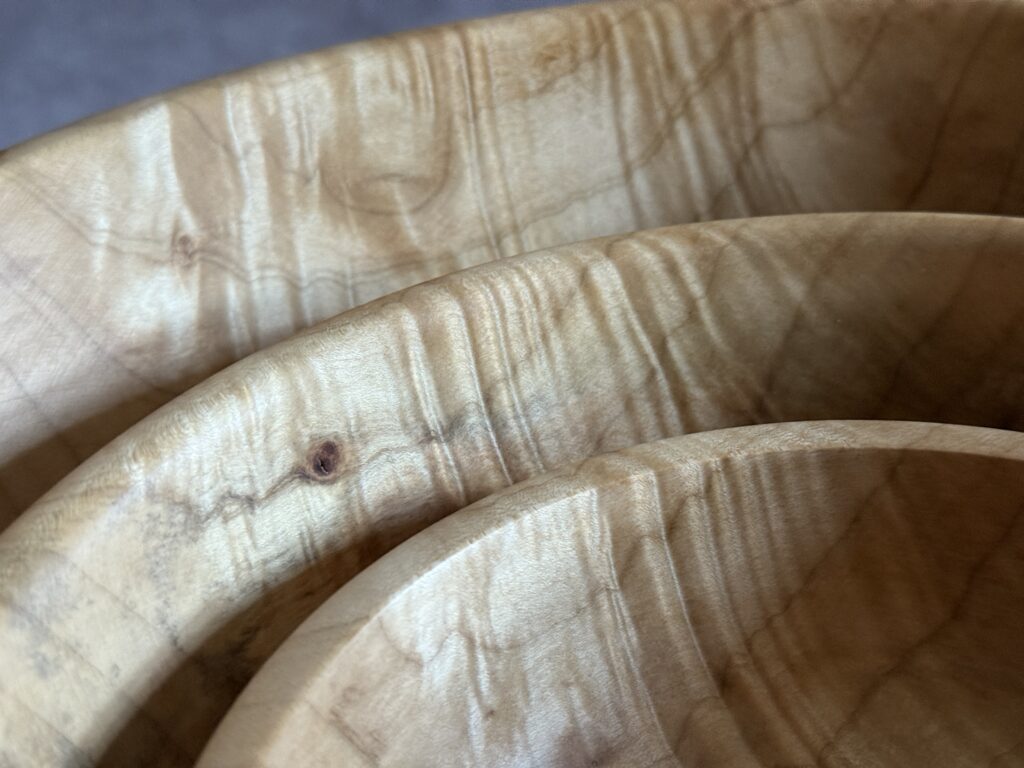 Some of these “traditional” bowls and platters are made in a 2-step process and allowed to dry in between. However, most are turned to their final shape and dimensions while green. As the wood dries, it can take on a slightly oval, organic shape that gives it a great rustic, cottage look. (Most nested sets can be purchased as individual pieces)
