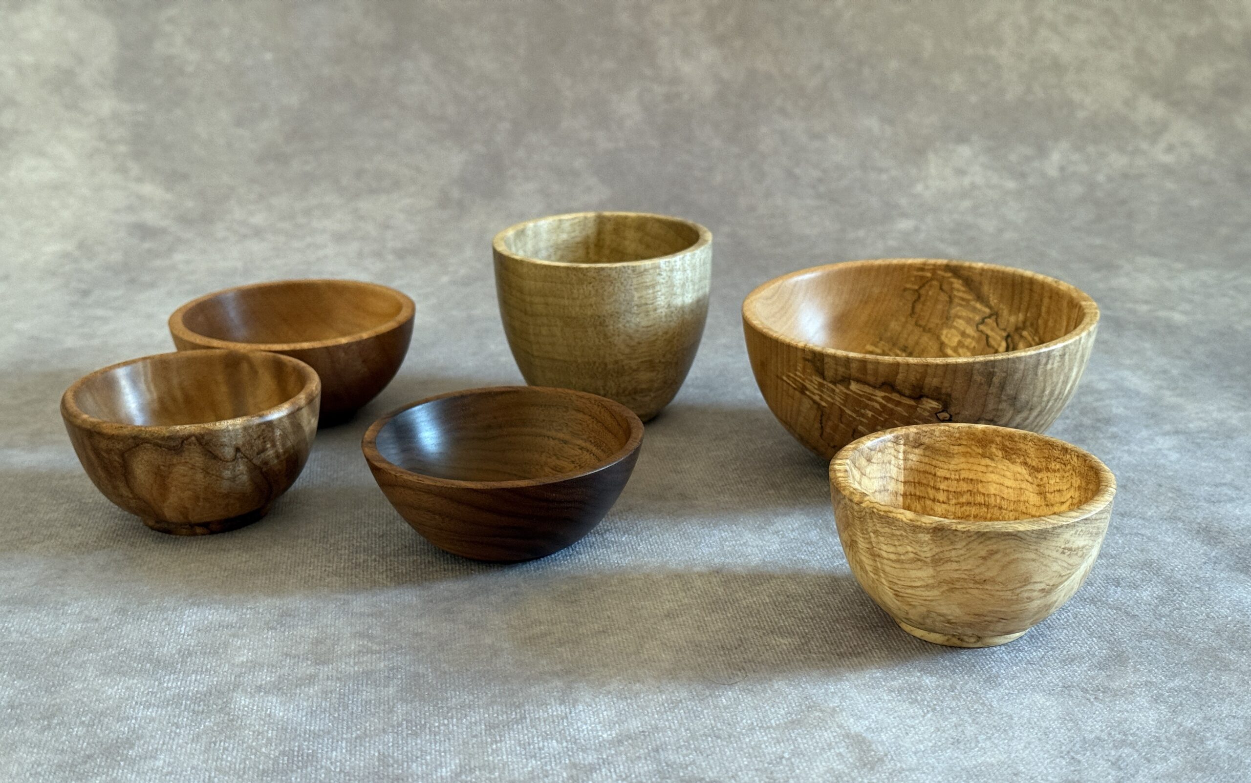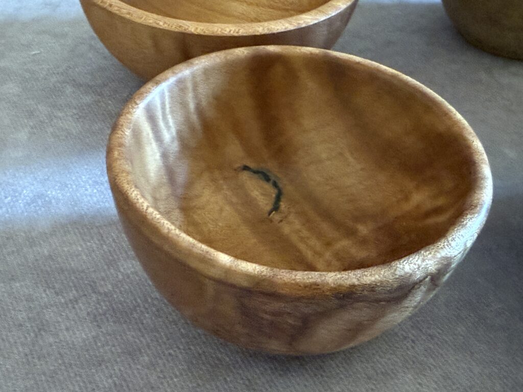 These little bowls are perfect for spices, jewelry, or just as decor, and are made from a variety of woods. 1″ to 2″ tall, 2″ to 5″ wide